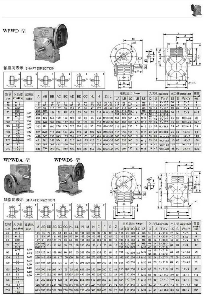 WPWD,WPWDA,WPWDS型型號參數(shù)圖表