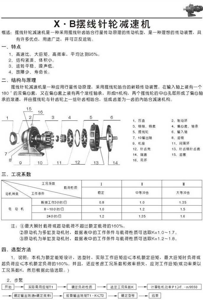 X . B擺線針輪減速機(jī)特點(diǎn)結(jié)構(gòu)與原理工況系數(shù)選型方法