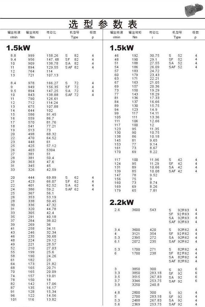 選型參數表1.5kW(續)和2.2kW